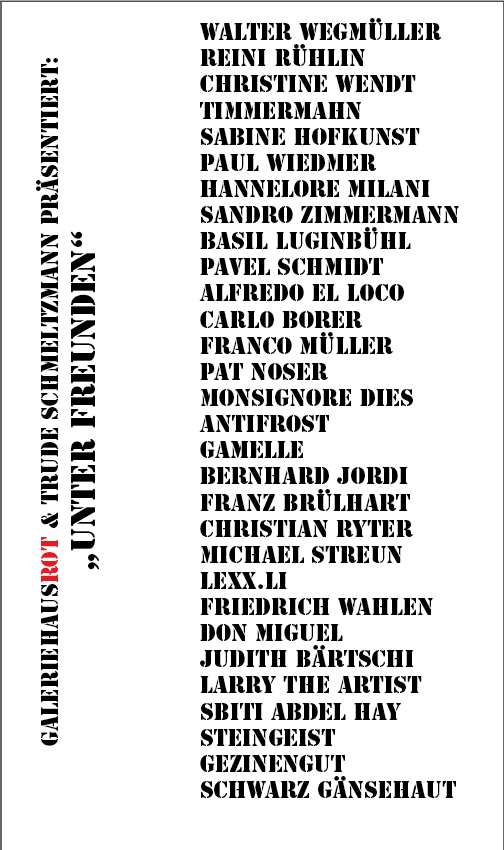 Vernissage Jedlitschka Gallery 7.Nov 17-20h, Seefeldstrasse 52, 8008 Zürich Mit Bruno Müller-Meyer, Mark Staff Brandl, J.J.White, Monsignore Dies und und und und mir