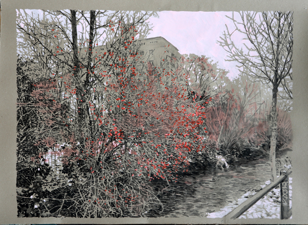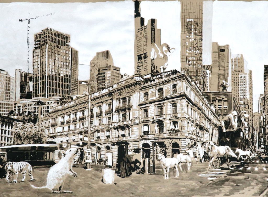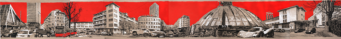 Zürich Paradplatz (Ausschnitt) 2022 150 x 425 cm Tusche, Gouache auf Papier